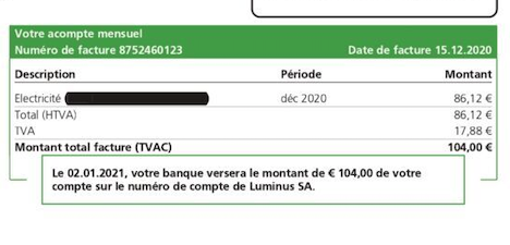 Par exemple, lorsqu’il détermine le montant de l’acompte, un fournisseur ne tient jamais compte des réductions éventuelles. Il s’agit souvent de remises qui dépendent de votre consommation, et un fournisseur ne peut les déterminer que lorsqu’il connait votre consommation réelle.